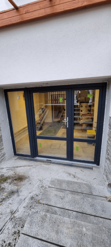 Alsó-Ausztriából származó ügyfelünk kihasználta a lehetőséget, hogy egyedi méretre tervezze meg háromszárnyú erkélyajtó összeállítását az online konfigurátor segítségével. Úgy döntött, hogy a jobb oldali szárny fix legyen, a másik kettőnél pedig a nyitható kivitel mellett döntött – továbbá osztóbordával egészítették ki, amely szépen tagolja az ajtót és érdekes dizájnelemet képez. A kivitelezéshez a REHAU SmartLine+ Classic rendszert választotta, amely kiváló ár-érték arányt kínál. Belül a klasszikus fehér színt szerette volna megtartani, míg kívül a modern antracit színt választotta homokstruktúrával.