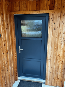 Egy felső-ausztriai ügyfelünk két egyszárnyú bejárati ajtót rendelt tőlünk, amelyeket saját igényei szerint tervezett meg a online konfigurátorunk segítségével. A megvalósításhoz a REHAU Synego PREMIUM rendszert választotta, amely magas követelményeknek felel meg minőség, biztonság és hőszigetelés terén.
