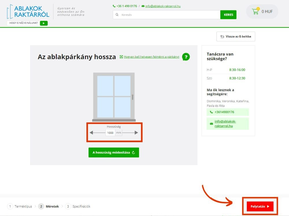 4. A hossz mezőbe írja be az ablaknál bemért adatokat. Amennyiben nem tudja, hogyan kell lemérni az ablakpárkányt, nézze meg az oktatóvideót.