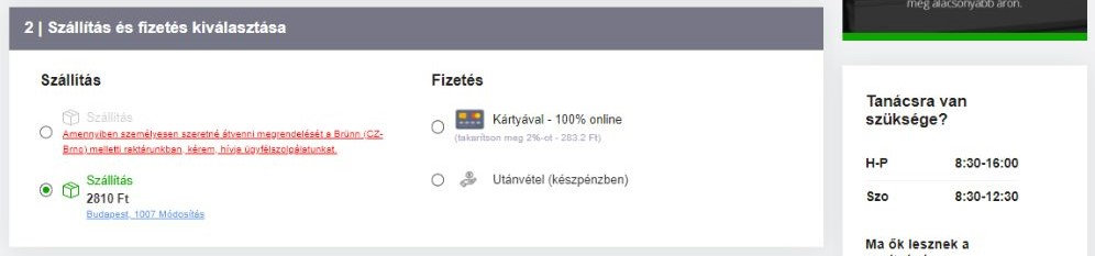 8. Ezt követően már csak a szállítási és fizetési módot kell meghatároznia. Alternatív megoldásként olvassa el a további információkat a szállítási lehetőségekről és a fizetési módokról.