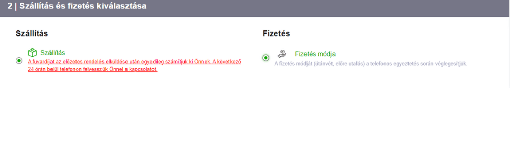 A következő lépésben kiválasztja a fizetési módot. Ha úgy dönt, hogy 100% -ot előre fizet, további 2% kedvezményt kap tőlünk.