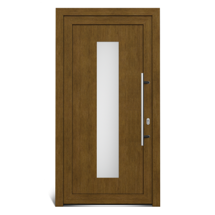 Az ajtók jobbosak és befelé nyílnak. A szárny 36 mm vastag PVC panelből (2 db 2 mm vastagságú HPL lemez és közöttük 32 mm vastag poliuretán habbal) és kétrétegű homokfúvott üvegből áll. A dekorfóliák minden profilrendszerhez egyediek, a szín vagy a dekor az egyes profiloknál eltérő lehet. Az ALUPLAST profilrendszerben az arany tölgy fólia színe eltér a REHAU profilrendszerek aranytölgy fóliájától.Mutatjuk a leggyakoribb kérdéseket