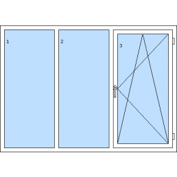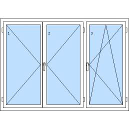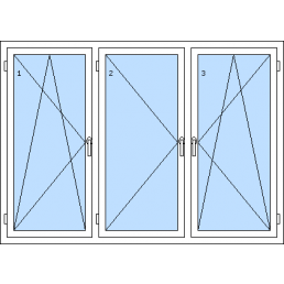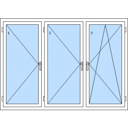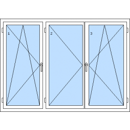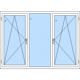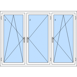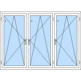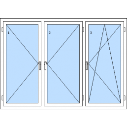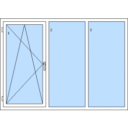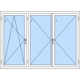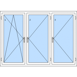 Háromszárnyú műanyag ablak-tól 116 930 HUFAz 1. szárny bukó-nyíló balos, a 2. szárny bukó-nyíló balos, a 3. szárny bukó-nyíló jobbos