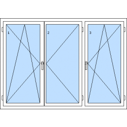 Háromszárnyú műanyag ablak-tól 61 370 HUF1. szárny fix, 2. szárny fix, 3. szárny fix