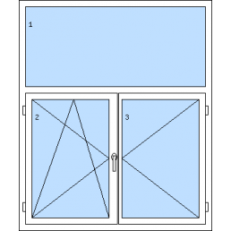 Kétszárnyú műanyag ablak felülvilágítóval-tól 147 300 HUFA bal és a jobb szárny bukó-nyíló + bukó-nyíló felülvilágító