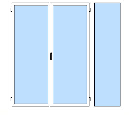 Kétszárnyú műanyag erkélyajtók 1 rögzített oldalsó résszel