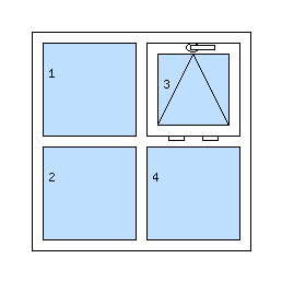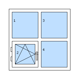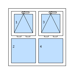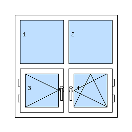 Négyszárnyú műanyag ablak-tól 105 300 HUFBal alsó szárny fix, jobb alsó szárny bukó-nyíló jobbos, felül mindkét szárny fix