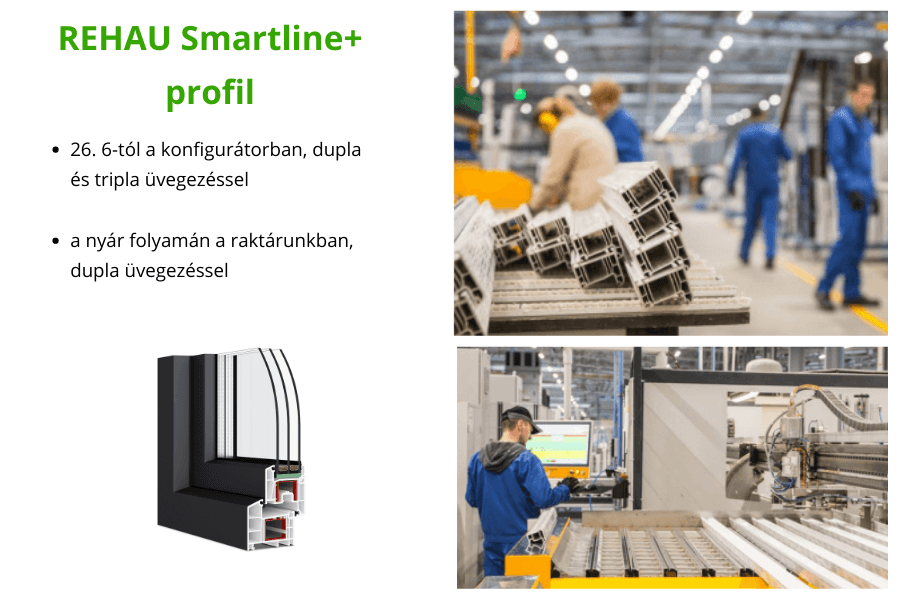 PREMIUM nyílászárókat továbbra is találhat a raktárkészletünkben, de a nyár folyamán fokozatosan lecseréljük őket az új REHAU Smartline+ profilra. Tehát ha PREMIUM ablakokkal részleges átépítése van, vagy csak szeretné kihasználni a PREMIUM ablakok és ajtók akciós árait, ne késleltesse a vásárlást.