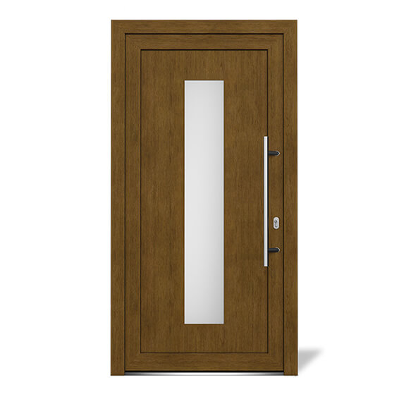Felújítást végez, és néhány napon belül szüksége van bejárati ajtóra? Mi seíthetünk Önnek. A közelmúltban 1044 × 2020 mm méretű EkoLine műanyag bejárati ajtókkal bővítettük raktári kínálatunkat, a tokhézag szélessége 904 mm és magassága 1930 mm. Az ajtók kívülről aranytölgy dekorral vannak ellátva, belülről pedig fehérek. Jobbos és balos kivitelben is kaphatóak, a nyitás mindig befelé történik.Más műanyag ajtóinktól eltérően ez az EkoLine ajtó dekoratív PVC panellel valamint katedrál üveggel és a klasszikus kilincs helyett modern fogantyúval rendelkezik. Az ajtó az Alupast Ideal 4000 profilból készül, bővebben a következő részben olvashat: Milyen ajtót vásárol. A raktáron lévő EkoLine ajtókat 3 munkanapon belül át tudjuk adni a fuvarozó társaságnak.