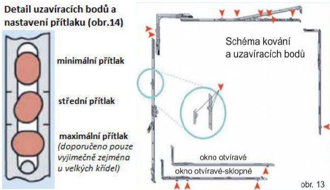 A 13. és 14. képen látható elzáró pontok elforgathatók (például 10. kulccsal), és ezzel fokozható a szárny tokra kifejtett nyomása. Kizárólag abban az esetben ajánlott, ha a szárny nincs megfelelő módon rányomva a tokra
