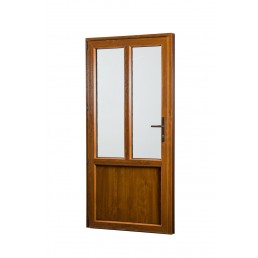 A REHAU Smartline+ egyszárnyú mellékbejárati ajtók alkalmasak a kertbe, garázsba való bejutáshoz vagy üzletek és raktárak hátsó bejárataként. Családi házak esetében hagyományos bejárati ajtóként is használható, de nem ajánlott középületekbe vagy társasházakba, ahol nagyobb a mozgás gyakorisága. A főbajárati ajtóhoz képest, amelyet a konfigurátoron keresztül megrendelésre szállítunk, olcsóbb, de nem rendelkezik széles szárnnyal, és csak befelé nyítható. A mellékbejárati ajtót a következő méretekkel kínáljuk: szélesség 88 cm, magasság 208 cm, átjáró szélesség 74 cm.Belső oldal fehér a külső aranytölgy színű. Az ajtó hőátbocsátási tényezője Uw=1,3 W/m²K.