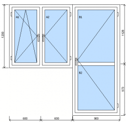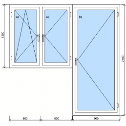 Sorolt szerkezet erkélyajtóval és fix ablakkal-tól 132 440 HUFA bal oldalon bukó-nyíló osztott üveges erkélyajtó, a jobb oldalon 2 fix